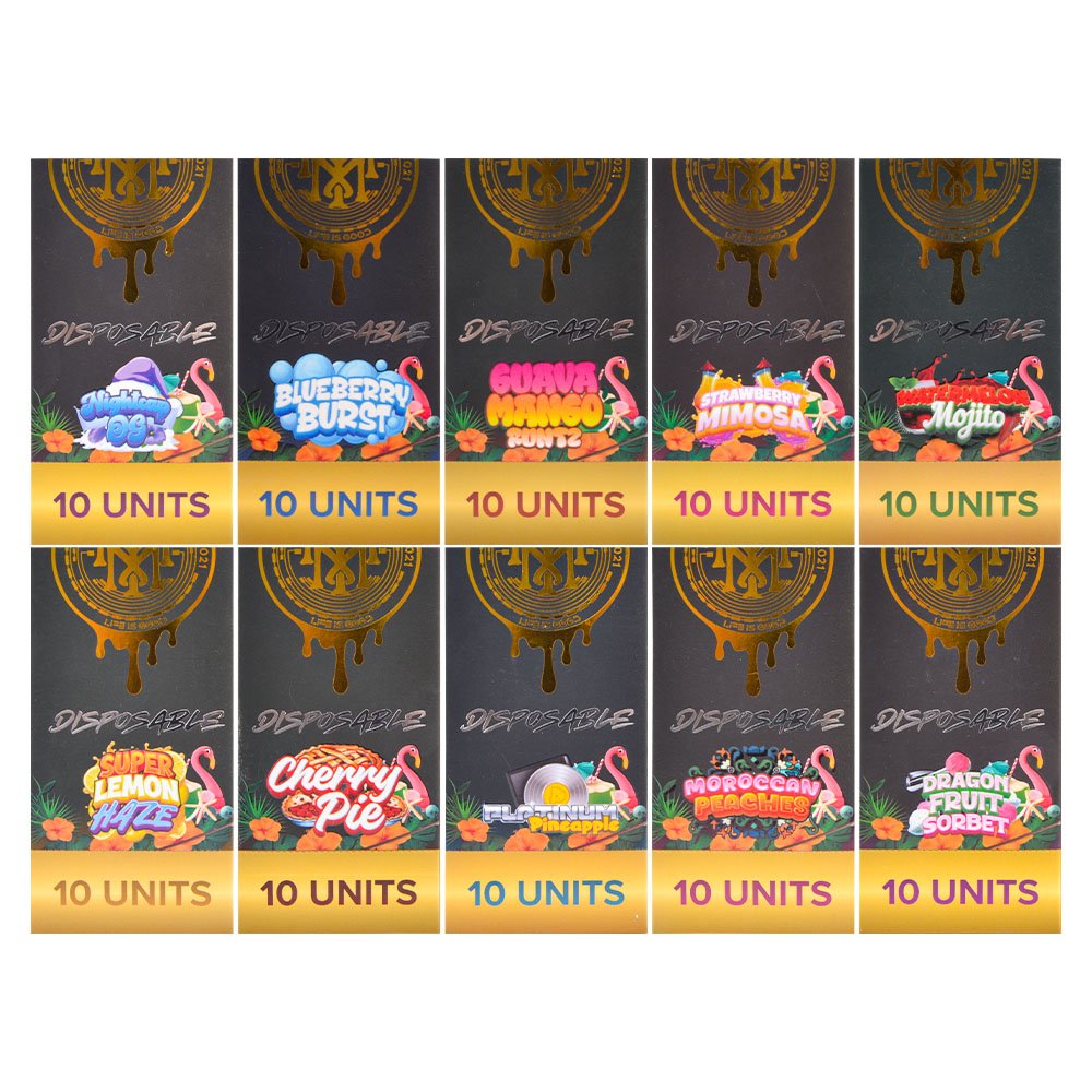 • HÍBRIDO: BLUEBERRY BURST; PLATINUM PINEAPPLE; NIGHTCAP OG; GUAVA MANGO RUNTZ