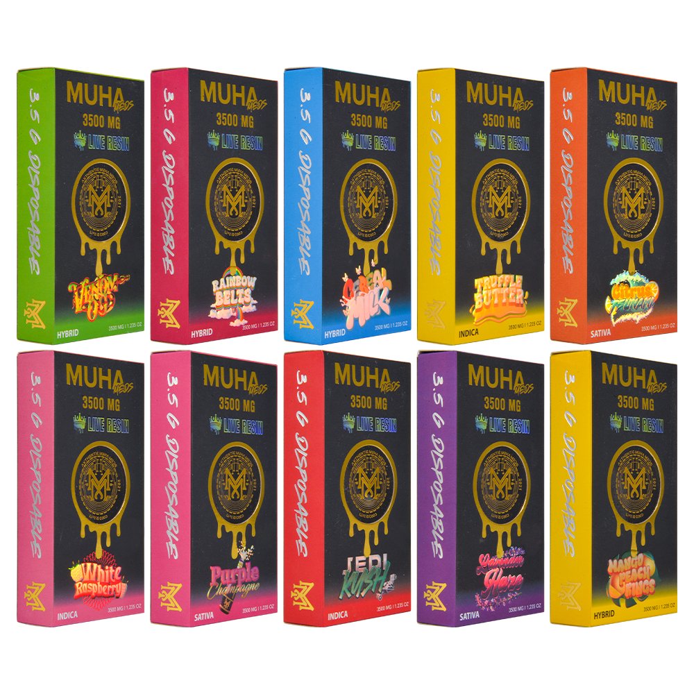 Proveedor directo de fábrica de Muha Meds Live Resin 3.5g al por mayor en Vapewholesalees. Ofrecemos envases vacíos de Muha Meds de 3.5 g y el nuevo MM THC de 3500 mg a granel — OEM/ODM.